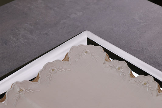 Tray mat embroidered with lace