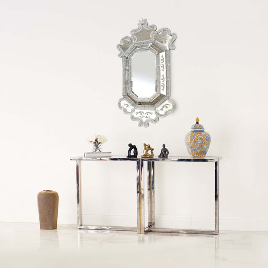 Steel console with glass shelf